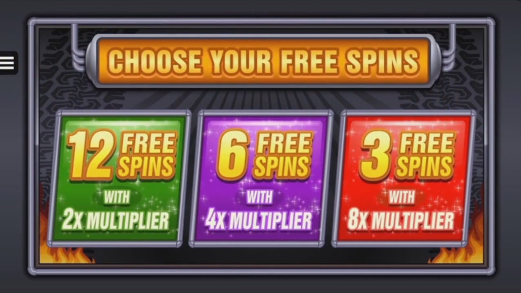För att trigga bonusen behöver du få 3 röda bensindunkar (scatter) på hjul 1, 3 och 5.